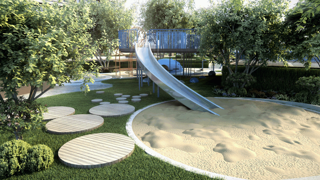 万科半岛国际针对不同人群特征规划混龄社区,以儿童乐园、休闲座椅、遮阳伞、棋牌空间、宠物乐园、青年活动中心等交互娱乐空间赋予更多的功能性,希望无论是大人,孩子,长者都能在这里拥有高质量的生活时间。