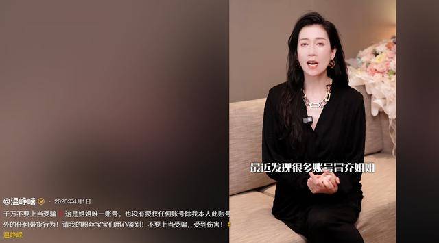 早在去年4月,温峥嵘就发视频打假,明确自己只有一个直播账号,从未授权任何商家带货。